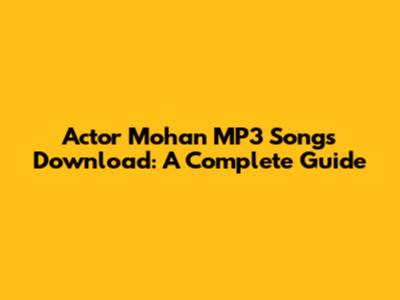 Download MP3 Songs Of Actor Mohan: A Complete Guide