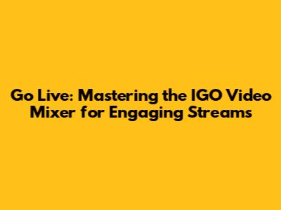 Go Live: Mastering The IGO Video Mixer For Engaging Streams