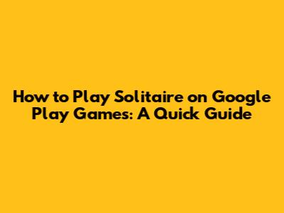 How To Play Solitaire On Google Play Games: A Quick Guide