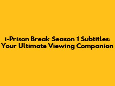 The Enduring Legacy of i-Prison Break Season 1 and Its Subtitles