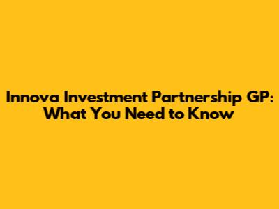Innova Investment Partnership GP: What You Need To Know