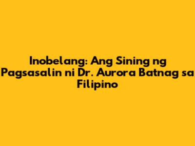 Inobelang: Pagsasalin Ni Dr. Aurora Batnag Sa Filipino