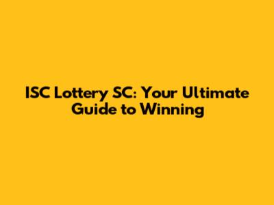 ISC Lottery SC: Your Ultimate Guide To Winning