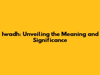 Iwadh: Unveiling The Meaning And Significance