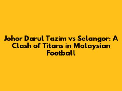 Hey football fanatics! Get ready to dive deep into one of the most electrifying rivalries in Malaysian football: Johor Darul Ta'zim (JDT) vs. Selangor! This isn't just any match; it's a battle of titans, a clash of styles, and a showdown filled with passion, skill, and nail-biting moments. We're going to break down everything you need to know about this epic contest, from the history and key players to the strategies and what makes this matchup so special. Let's get started!