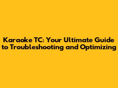 Karaoke TC: Guide To Troubleshooting & Optimizing