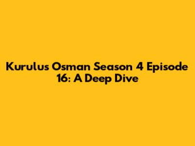 Hey everyone! Let's dive deep into Kurulus Osman Season 4 Episode 16. This episode was packed with action, drama, and all the things we've come to love (and sometimes hate!) about this epic historical series. From Osman Bey's strategic moves to the emotional turmoil of our favorite characters, there's a lot to unpack. So grab your chai, settle in, and let's break down everything that went down in this thrilling installment.