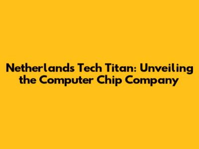 Netherlands' Tech Titan: Unveiling The Computer Chip Company