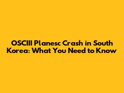 OSCIII Planesc Crash In South Korea: What You Need To Know