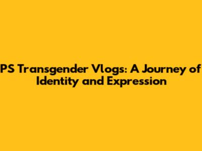 PS Transgender Vlogs: A Journey Of Identity And Expression