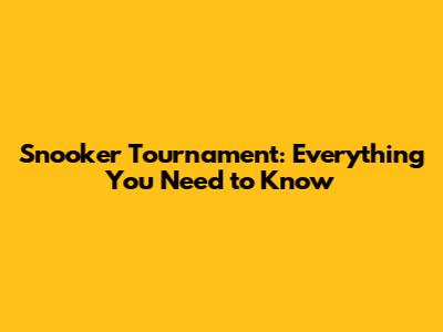 Snooker Tournament: Everything You Need To Know