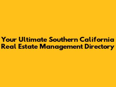 Leveraging the Southern California Real Estate Management Directory for Success