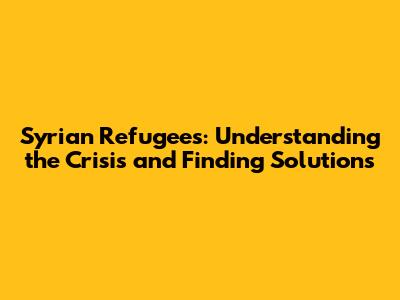 Syrian Refugees: Understanding The Crisis And Finding Solutions