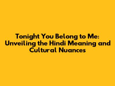 Alright, let’s get into the Hindi translation of “Tonight You Belong to Me.” The beauty of translating this song lies in capturing the essence of the original lyrics while ensuring it resonates with the Hindi-speaking audience. It's like taking a precious gem and carefully recutting it to make it shine even brighter in a new light. The literal translation can vary based on the specific interpretation, but the overall message stays the same: a tender promise of love and belonging. The translated lyrics often use words that reflect deep affection, commitment, and a sense of unity. Hindi is a language rich in emotion and imagery, making it perfect for expressing the feelings in this song. Think about how the words are carefully chosen to paint a picture of love, trust, and intimacy. Translators often choose words that convey the tenderness of the original lyrics while still retaining the sense of romance and devotion.