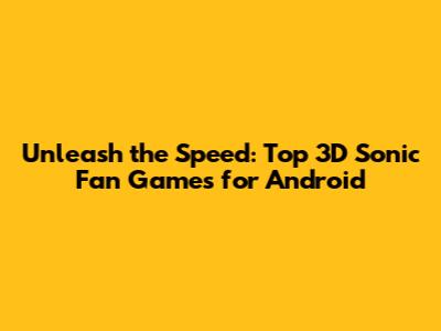 Unleash The Speed: Top 3D Sonic Fan Games For Android