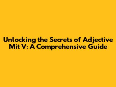 Unlocking The Secrets Of Adjective Mit V: A Comprehensive Guide