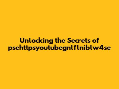 Unlocking The Secrets Of Psehttpsyoutubegnlflniblw4se