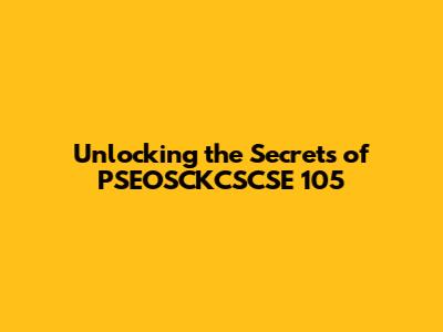 What Exactly is PSEOSCKCSCSE 105?