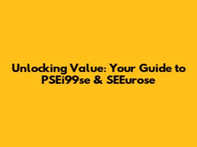 Unlocking Value: Your Guide To PSEi99se & SEEurose