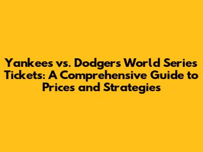 Strategies for Finding the Best Yankees vs. Dodgers World Series Ticket Deals